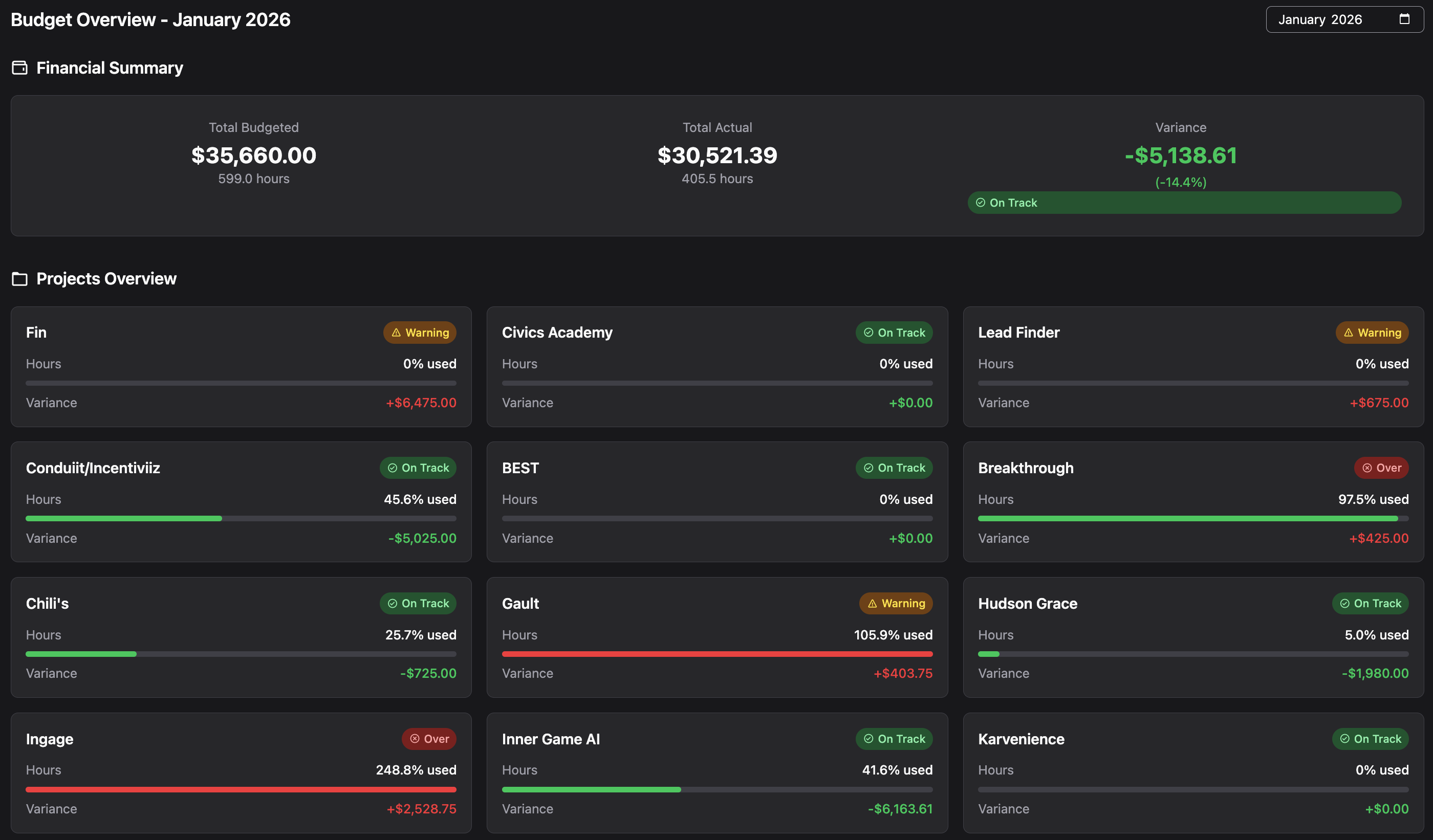 You're juggling accounting tools, spreadsheets, and project management tools, and praying nothing falls through the cracks.